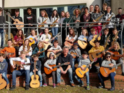 Das Argument der Nähe kommt nur noch hinzu. Der Unterricht beginnt entspannt. Während die Gitarrengruppe in GMlesson1 Blueslicks einstudiert,